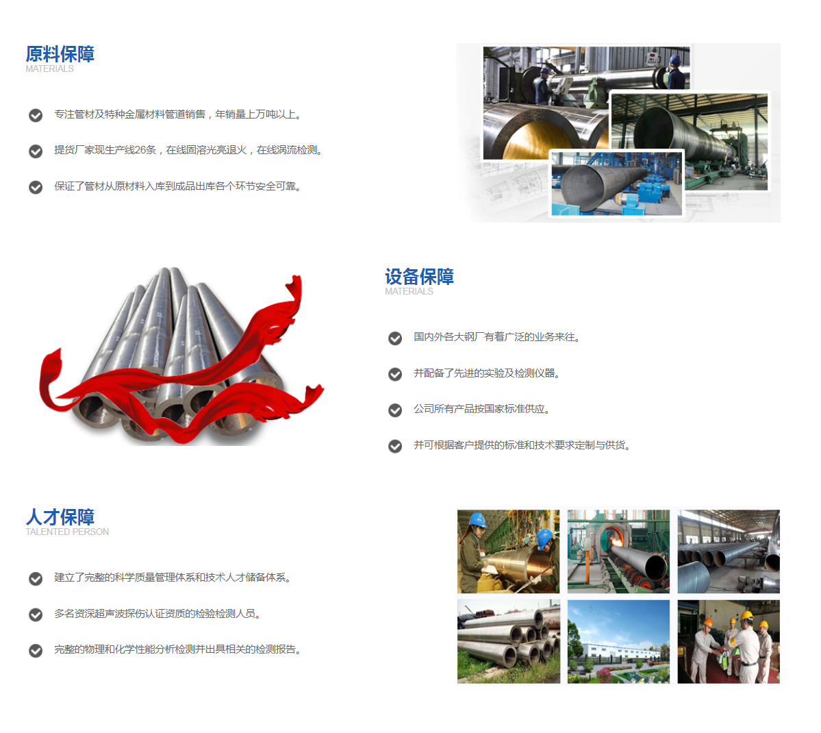 山東鑫盛鑫鋼鐵有限公司是一家專業(yè)銷售:無縫鋼管,合金管,異型管,精密管,圓鋼,軸承鋼的大型無縫鋼管廠廠家。可定做,多種規(guī)格,多種型號的無縫鋼管。另常年兼營成都、包鋼、冶鋼、魯寶、鞍鋼、安陽、洪都、天津等幾大鋼廠的國產進口的無縫鋼管、無縫管、流體鋼管、直縫焊管,經營品種多、規(guī)格齊全,保質保量,常年庫存保有量7000噸以上。所售產品均執(zhí)行國家標準,適用于工程、煤礦、紡織、電力、鍋爐、機械、軍工等各個領域。公司始終堅持“公正、客觀、科學、誠信”的經營原則,重合同、守信譽、保質保量、按期交貨”。多年來公司憑借良好的信譽、優(yōu)質的產品、低廉的價格享譽全國30多個省、市、自治區,產品出口歐洲、南美等十多個國家,深得用戶信賴! 常備材質:20#、45#、20G、16Mn、27SiMn、12Cr1MoVG、15CrMo、T91、10CrMo910、STFA25(P5)、STFA26(P9)、P11、P12、A335P91、A335P92、WB36[15NiCuMoNB5]、鋼研102(12Cr2MoWVTiB)等。執(zhí)行標準為:結構管GB8162-1999、流體管GB8163-1999、低中壓鍋爐管GB3087-1999、液壓支架管GB17396-1999、高壓鍋爐管GB...